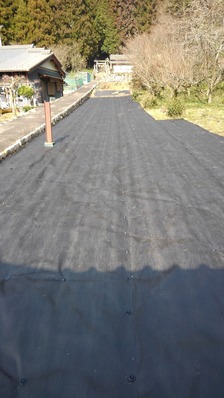 きょうは、庭の草を刈って、木を伐採して更地にした後に防草シートを